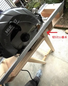 下の写真は45mmの垂木を切断するところです。