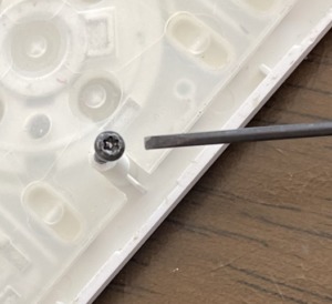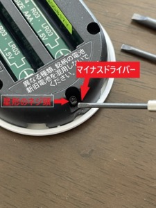 私は星形のドライバーを持っていなかったが、星形の穴にキチキチに入ればマイナスドライバーでも良いかと思い、いろんな大きさのマイナスドライバーを噛ませてみたところ、ピッタリのマイナスドライバーがありました。